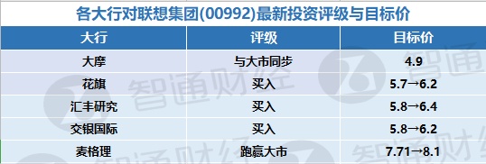 二、各大行对联想集团(00992)最新投资评级与目标价