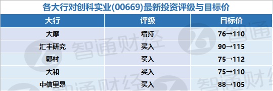 五、各大行对创科实业(00669)最新投资评级与目标价