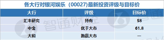 六、各大行对银河娱乐(00027)最新投资评级与目标价