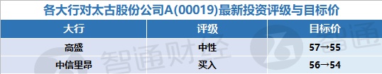 七、各大行对太古股份公司A(00019)最新投资评级与目标价