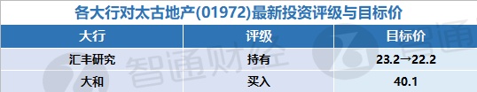 八、各大行对太古地产(01972)最新投资评级与目标价
