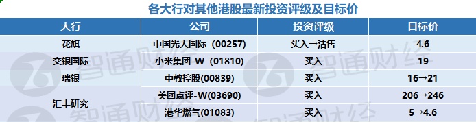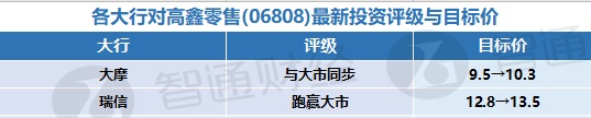 九、各大行对高鑫零售(06808)最新投资评级与目标价