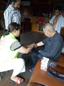 文利江医生连线平安好医生的医生专家为村民提供远程义诊