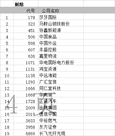 同时,莎莎国际(00178)、马鞍山钢铁股份(00323)等19只股票遭剔除。