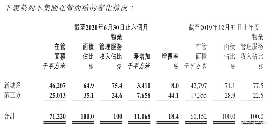 据智通财经APP了解到,截至2020年6月30日,新城悦服务在管面积为约7120万平方米,同比净增加约1100万平方米或同比增长18.4%。其中,在管面积同比净增加341万平方米或同比增长8.0%;第三方的在管面积同比净增加765.8万平方米或同比增长44.1%。