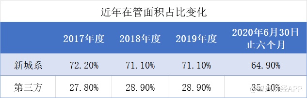 值得一提的是,作为母公司分拆出来的物业上市公司,新城悦服务在上市之初被指出业务对于关联方过度依赖,合约面积约有70%均来自于新城控股。而从公司近几年整体表现来看,公司来自第三方在管面积的占比有所提升。