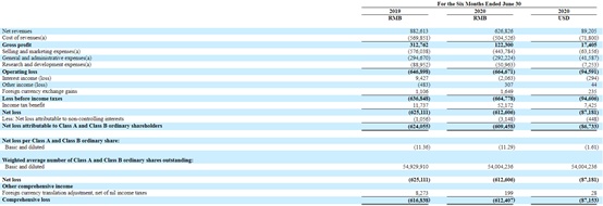 智通财经APP观测到,该公司2020上半年净营收6.268亿元(人民币,单位下同),较上年同期约8.826亿元下降29%;净亏损6.126亿元,去年同期为6.251亿元,非公认会计准则下(Non-GAAP)净亏损5.913亿元,去年同期6.004亿元。营业亏损6.647亿元,去年同期6.469亿元,Non-GAAP营业亏损6.434亿元,去年同期6.222亿元。