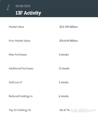 第二季度内,老虎环球基金新增4只个股,加仓12只个股,减仓6只个股,同时对5只个股进行了清仓处理。前十大重仓股占总持仓比例的58.47%。