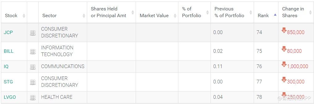 前五大卖出股有雅典娜控股(ATH.US)、万事达(MA.US)等。