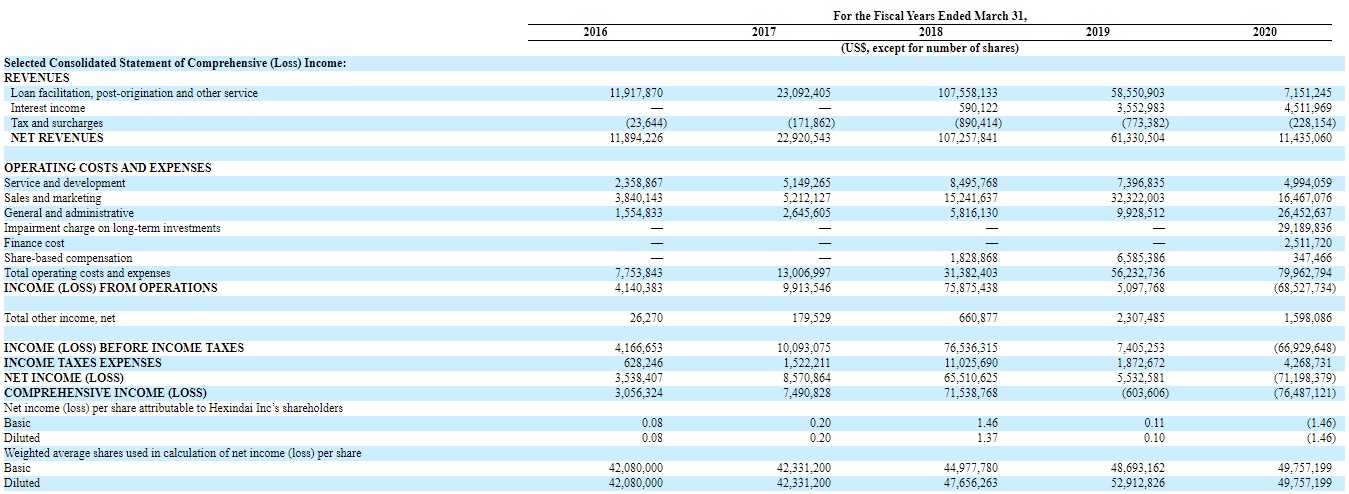 智通财经APP获悉,和信贷(HX.US)向SEC提交了截至2020年3月31日的20-F年度报告,披露了2020财年业绩和最新持股结构。