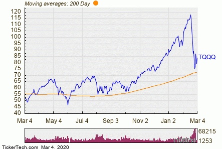 FactSet数据显示,如果TQQQ投资者经历2018年12月的“圣诞节大屠杀”和今年3月的这两波暴跌,超过100%的累计收益可能被轻松抹去。