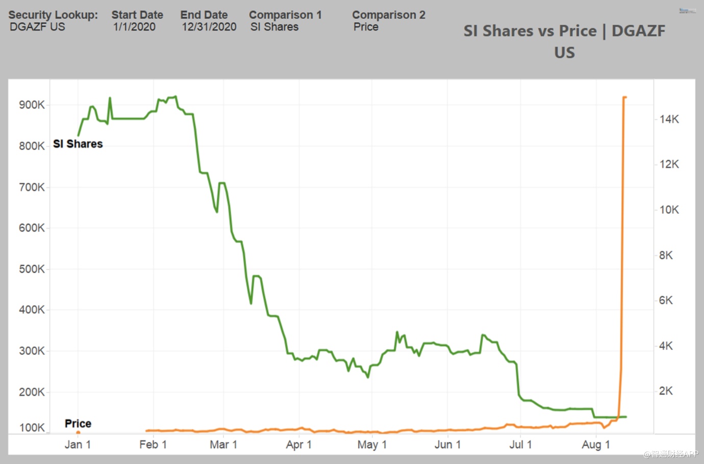 8月7日,该ETN的空头头寸仅有1亿美元,但由于该ETN的股价从720.05美元涨到15000美元,导致卖空者遭受按市值计价为19.99亿美元的损失。在不到一周的时间里,该ETN的空头损失高达1999%。而该ETN的卖空者又在8月12日这一天遭受按市值计价为16.8亿美元的损失。