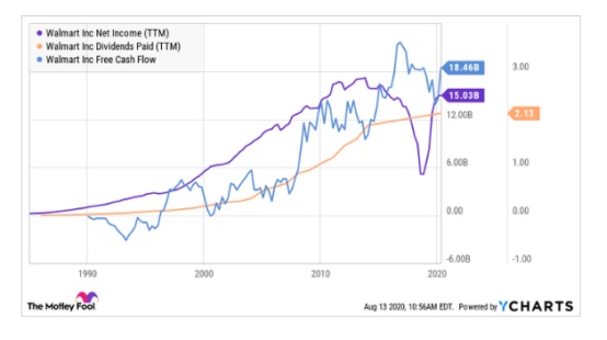 自从1974年沃尔玛开始第一季度分派股息以来,该公司每年都会增加股息。这几十年的业绩让沃尔玛成为股息贵族。