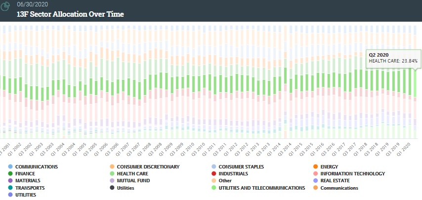 从持仓偏好来看,医疗保健,IT以及非必需消费品个股位列前三,占总持仓的比例分别为23.84%、15.24%和12.70%。上季度,该基金持有的医疗保健类股票占比达25.65%,本季度略有降低。