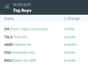 从持仓比例变化来看,文艺复兴前五大买入股分别是:Zoom Video通讯、特斯拉(TSLA.US)、艾伯维、拼多多(PDD.US)和百度(BIDU.US)。