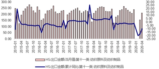 纺织服饰数据逐步好转,市场预期跟随提升。智通财经APP了解到,2020年六月份HS服装类的出口金额达到280.29亿美元,2020年截止至六月份累计同比为2.2%。2020年七月份中国的总出口金额为2376.30亿美元,同比上涨7.70%,相较六月份同比上升0.50%的情况有所好转。1-7月纺织服装累计出口金额同比增加5.6%,增速提升了2.4个百分点,分品类看的话纺织类、服装类产品出口金额分别累计同比+29.8%、-19.4%,增速环比增加3.4、2.8个百分点,其中7月单月纺织类出口金额更是保持了48.4%的同比高增长,纺服单月出口金额创出新高。