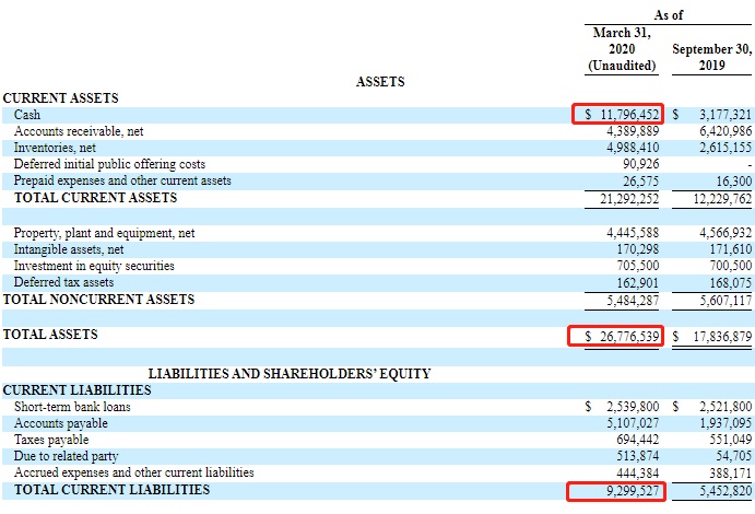 截至2020年3月31日,公司总资产为2677.7万美元;总负债为930万美元;持有现金1179.6万美元。