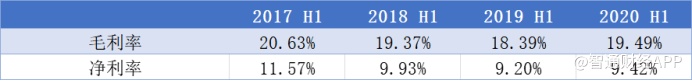 盈利能力方面,公司毛利率、净利率于2020上半年也均较去年同期分别实现了1.10和0.22个百分点的增长。而其中,净利率于近四年表现中整体呈下降趋势。