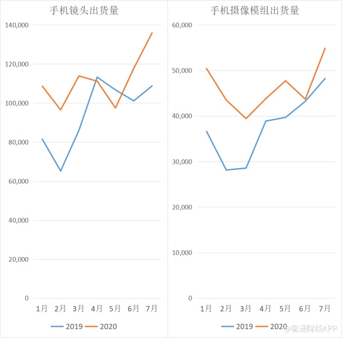 智通财经APP了解到,从主要产品出货量来看,公司手机摄像模组出货量于前7个月均高于去年同期,相比于手机镜头于4月、5月出货量低于去年同期,手机摄像模组出货表现在公共卫生事件的影响下更为稳定。除此之外,自7月起,公司手机镜头、摄像模组出货量均同比出现较大增长。