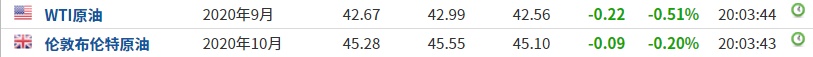 截至发稿,WTI原油跌0.51%,报42.67美元/桶。布伦特原油跌0.20%,报45.28美元/桶。