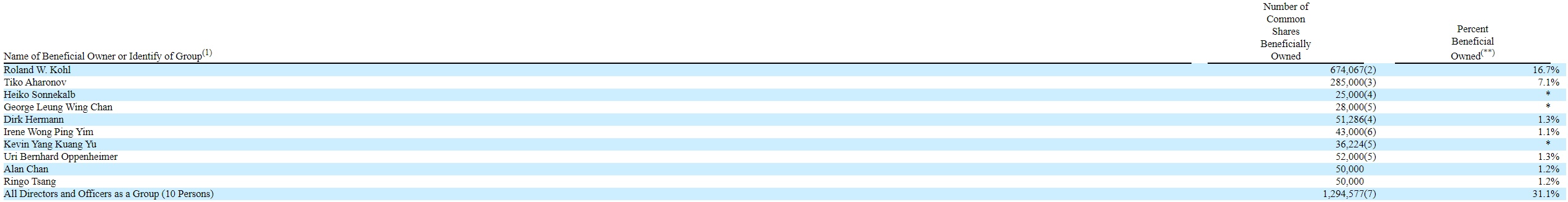 董事会主席、首席执行官Roland W. Kohl持股占比16.7%。