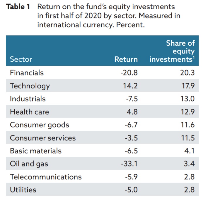 智通财经APP获悉,8月18日(周二),世界上最大的主权财富基金——挪威政府全球养老基金公布了2020年上半年投资报告。