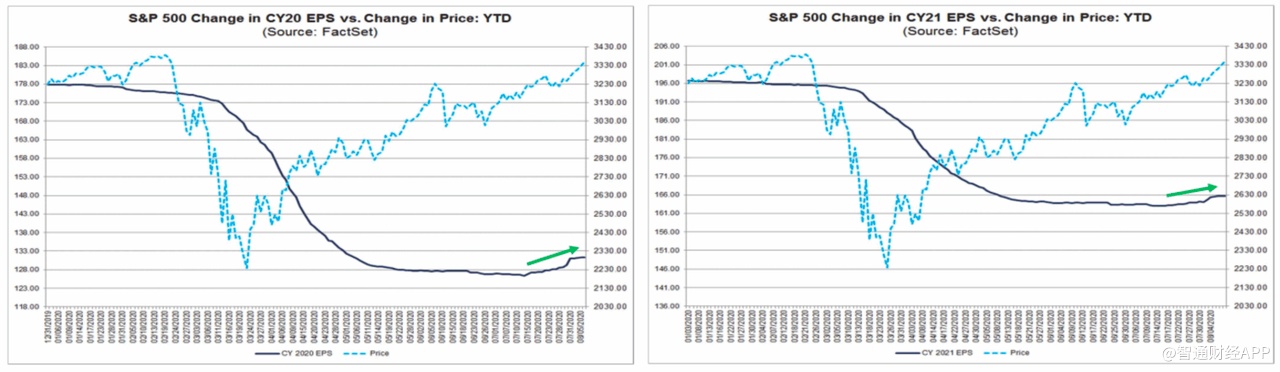 自6月30日以来,FactSet跟踪的2020年所有标普500指数成分公司的每股收益预期的中值已上调3.5%,从126.86美元上调至131.30美元。