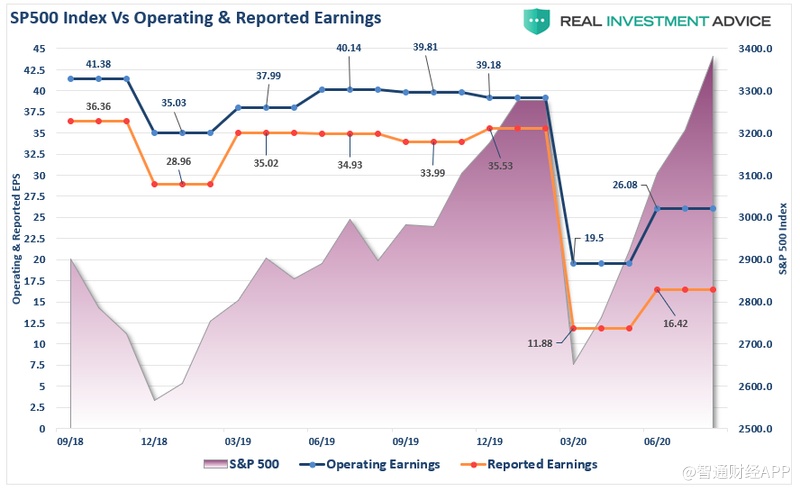 值得注意的是,在过去的两年里,标普500指数的报告收益大幅下降。虽然分析师们目前希望“V型”经济复苏能够支持“曲棍球棒型”复苏,但这种情况不会发生的可能性很高。