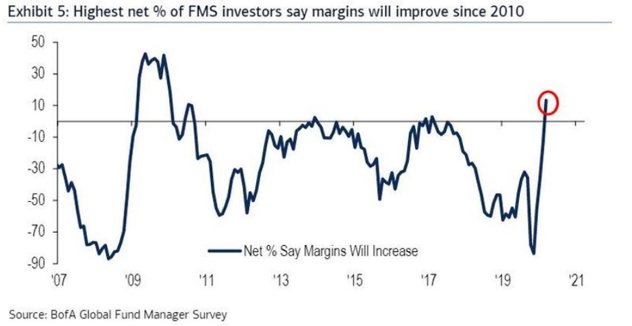 认为利润率将有所提高的受访者比例为2010年以来最高。