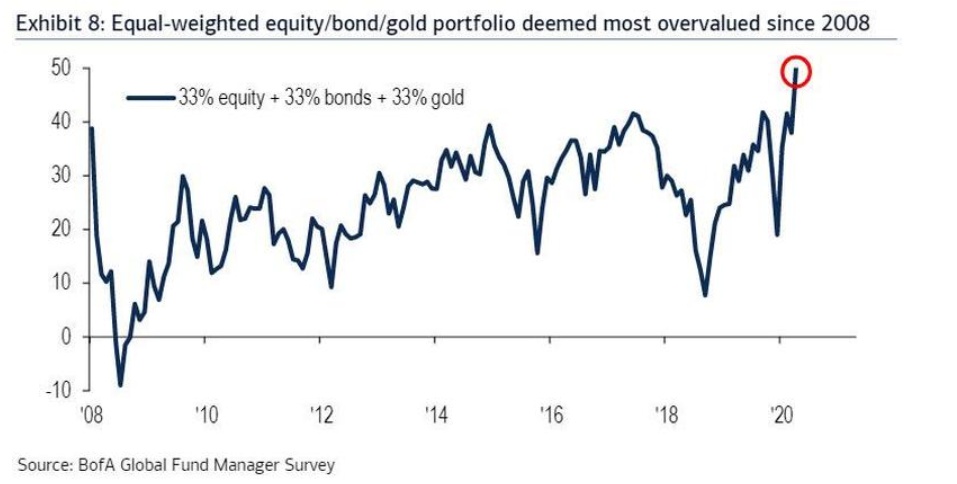 尽管这些专业投资者认为资产(股票/债券/黄金)被高估程度为2008年以来之最,但他们依然纷纷涌入股市。