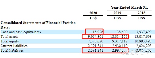 截至2020年3月31日,公司总资产为996万美元,去年同期为1231万美元;持有现金和现金等价物15926美元; 公司总负债为259万美元,去年同期约为300万美元。