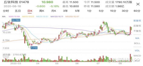 智通财经APP注意到,公司中期业绩大幅向好之际,丘钛科技近两个交易日的股价表现却颇有“利好兑现”的意味。公司于8月17日午间公布业绩后,股价随即在下午开盘快速拉升,全天上涨13.31%。8月18日,丘钛股价表现“画风突变”开盘即遭遇强势打压,全天走出震荡下行走势,截至收盘报于10.9港元,下跌5.87%。