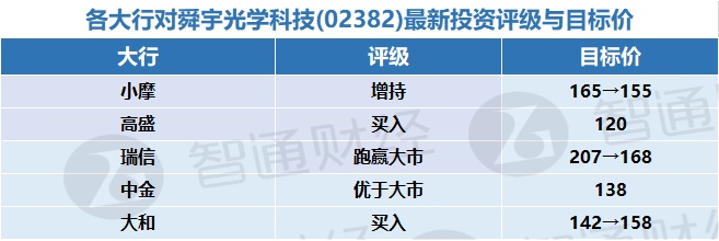 三、各大行对舜宇光学科技(02382)最新投资评级与目标价