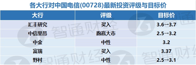 五、各大行对中国电信(00728)最新投资评级与目标价