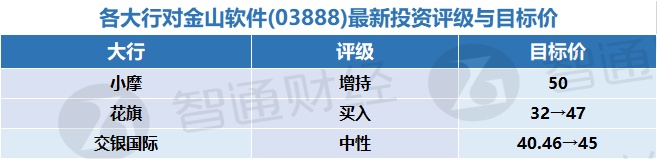 八、各大行对金山软件(03888)最新投资评级与目标价