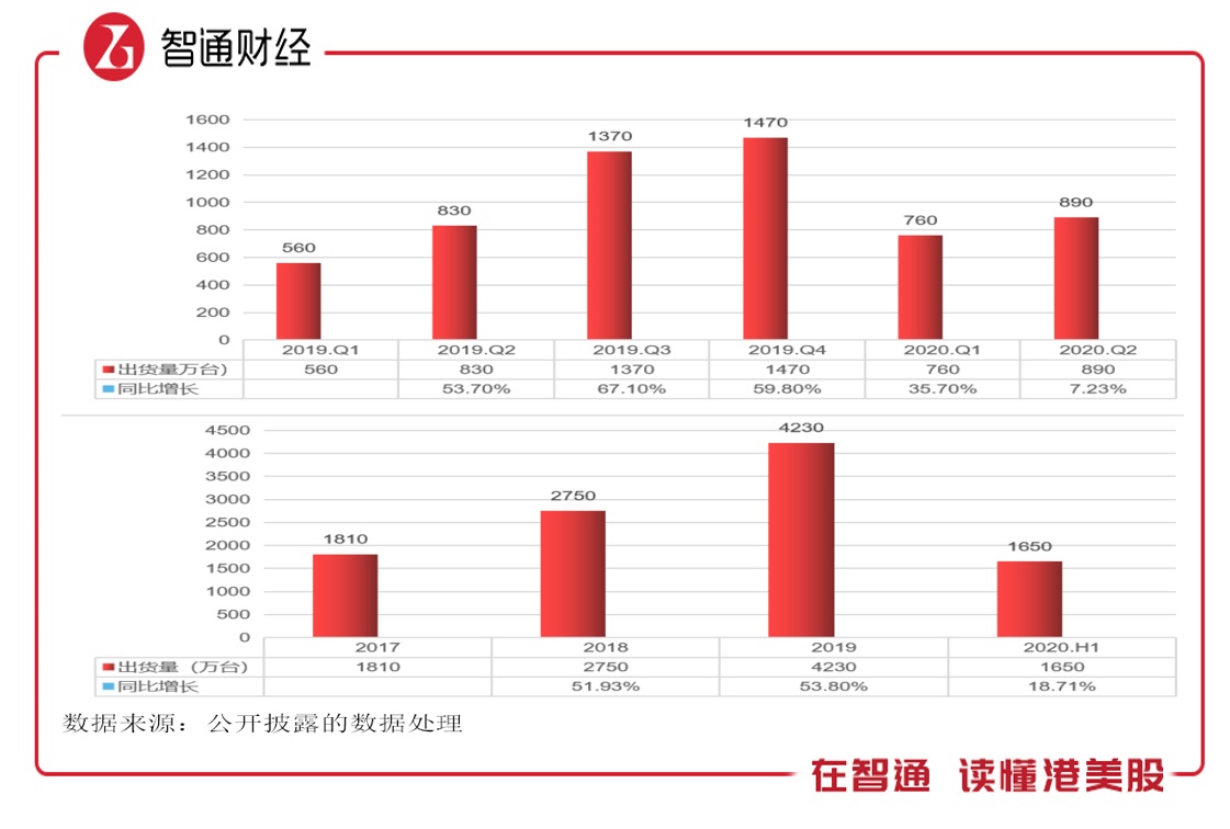 智通财经APP了解到,8月18日,华米科技发布了2020年Q2业绩,实现收入11.37亿元,同比增长9.5%,超过了营收指引上限,上半年收入22.26亿元,同比增长21.1%。该公司于第二季度总出货量达到890万台,同比增长7.2%;上半年总出货量1650万台,同比增长18.71%。