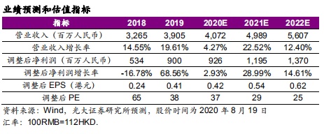 看好中国东方教育长期稳定发展趋势,维持“买入”评级。 1)五大区域中心的建设稳步推进之中,但是目前还没有落地的城市,建设 进度稍微落后于我们的预期。2)公共卫生事件对于 H1 的线下培训以及各项工作的展 开会有一些影响,但是目前公司从报名人次上去看已经恢复到 19 年的 90% 以上,且有望于 9 月底达到 19 年同期水平或略有增幅。考虑到上述原因, 我们小幅下调 20 年的调整后净利润预测为 9.26 亿元,维持 21-22 年调整后 净 利 润 预 测 为 11.95/13.70 亿 元 。 20-22 年 净 利 润 增 速 分 别 为 2.93%/28.99%/14.61%。我们认为公司内生外延增长可期,随着公司对课程结构的优化,生均学费将会逐步提升。我们看好中国东方教育长期稳定的发展趋势,维持“买入”评级。