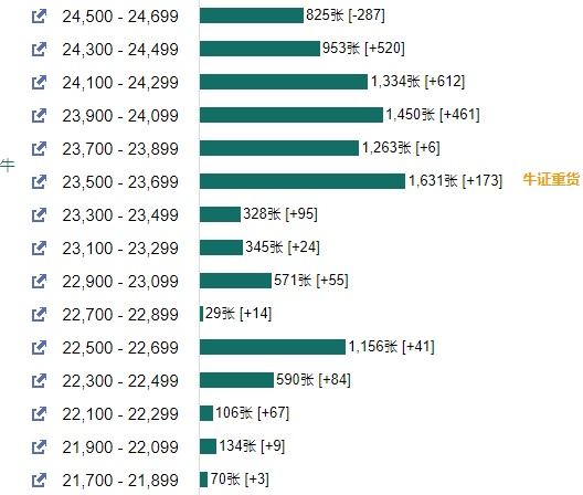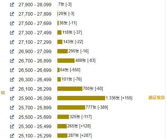 智通财经APP获悉,截至8月20日,恒指最新的牛熊街货比例69:31。摩根恒指牛熊证街货分布图中的数据显示,熊证街货重货区在25900-26099区间,该区间最新熊证数量为1336张,较上一交易日增加155张,最多新增25100-25299区间,该区间最新熊证数量为287张,较上一交易日增加287张。牛证街货重货区在23500-23699区间,该区间最新牛证数量为1631张,较上一交易日增加173张,最多新增区间在24100-24299区间,该区间最新熊证数量为1334张,较上一交易日增加612张。