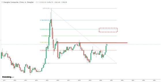 而笔者也反复强调如果A股牛市要突破,必须要突破3450点的关口。如读者打开图表中看,你会发现3450点的一直未能突破。当然如果突破3450点之后,上证目标将直指3900/4200。但是笔者一直时间先行,价格为次。