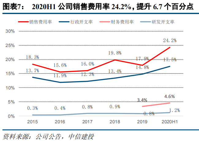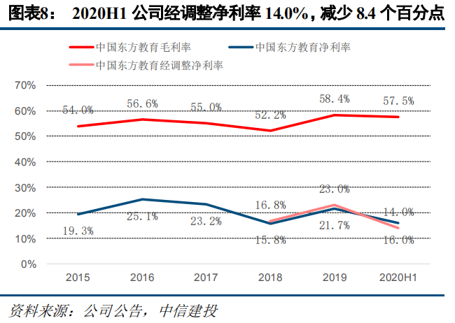 营业成本相对刚性降低毛利率,盈利能力小幅下降。受教师工资、租赁开支、维护折旧等支出相对刚性影响,上半年公司毛利率57.5%,较上年同期减少3.3个百分点。销售、行政、财务、研发费率分别为24.2%、17.5%、4.6%、1.2%,较上年同期分别增加6.7、1.9、1.2、0.4个百分点,销售费用率增加主要是公共卫生事件使公司销售活动时间延长所致。受益银行利息、外汇收益增加,公司其他收入、其他受益分别为1.08、0.87亿元,较上年分别增长0.82、0.76亿元。公司净利率16.0%,较上年同期减少1.2个百分点。