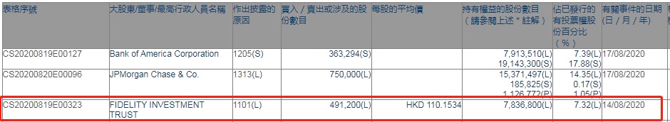 智通财经APP获悉,香港联交所最新资料显示,8月14日,FIDELITY INVESTMENT TRUST增持泰格医药(03347)49.12万股,每股作价110.1534港元,总金额约5410.74万港元。增持后最新持股数目约为783.68万股,最新持股比例为7.32%。