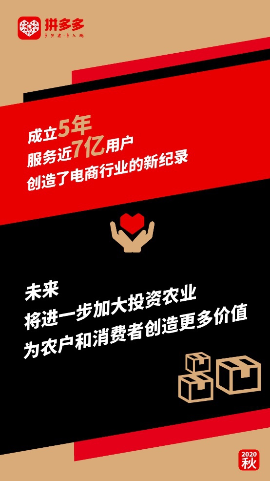 成立5年,拼多多已实现服务近7亿用户,创造了电商行业的新纪录。陈磊表示,农业是一个触及人群最广的行业,未来,拼多多将进一步投资于农业价值链各个环节的技术和业务,加速农业产品的网上零售渗透率,为农户和消费者创造更多价值。