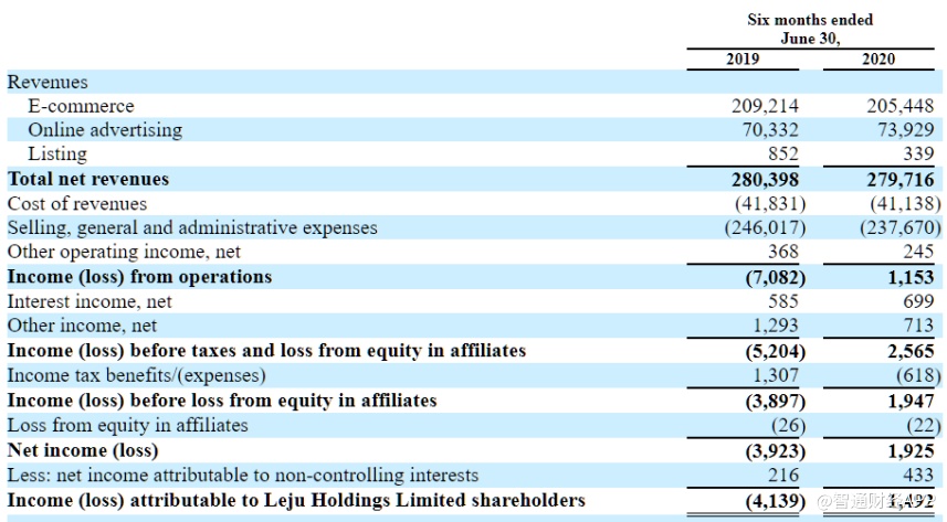 8月20日,乐居公布了其今年上半年的财务业绩。财报显示,上半年公司总营收为2.79亿美元,同比基本持平;当期净利润为190万美元,同比实现扭亏为盈。