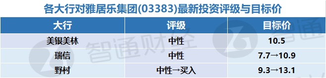 八、各大行对雅居乐集团(03383)最新投资评级与目标价