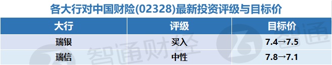 十、各大行对中国财险(02328)最新投资评级与目标价