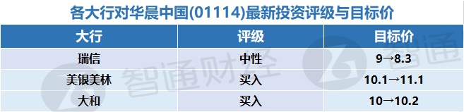 十二、各大行对华晨中国(01114)最新投资评级与目标价