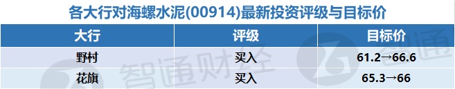 十三、各大行对海螺水泥(00914)最新投资评级与目标价