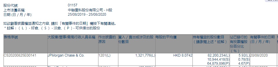 智通财经APP获悉,香港联交所最新资料显示,8月20日,小摩减持中联重科(01157)132.1776万股,每股作价8.0742港元,总金额约1067.23万港元。减持后最新持股数目约为8220万股,最新持股比例为5.92%。