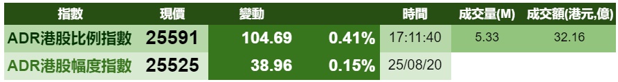 智通财经APP获悉,周二美股纳指、标指创新高,从指数层面理解,已经彻底消除了之前的影响,港股ADR指数也在多头情绪的影响下走强,按比例计算,收报25591点,涨104.69点或0.41%。