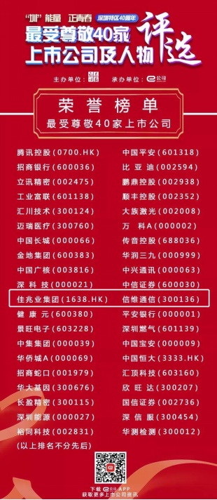 40年沧桑巨变,40年丰碑铸就。在深圳特区建成40周年之际,证券时报旨在通过此次评选见证和记录下不断书写自己历史、创造深圳奇迹、赢得世界尊重的深圳企业军团。此次佳兆业集团和郭英成先生获评“最受尊敬40家上市公司及额人物”,是市场和权威机构对佳兆业深度参与特区建设的充分肯定,也是对掌舵人郭英成先生领导能力、责任与担当的认可。